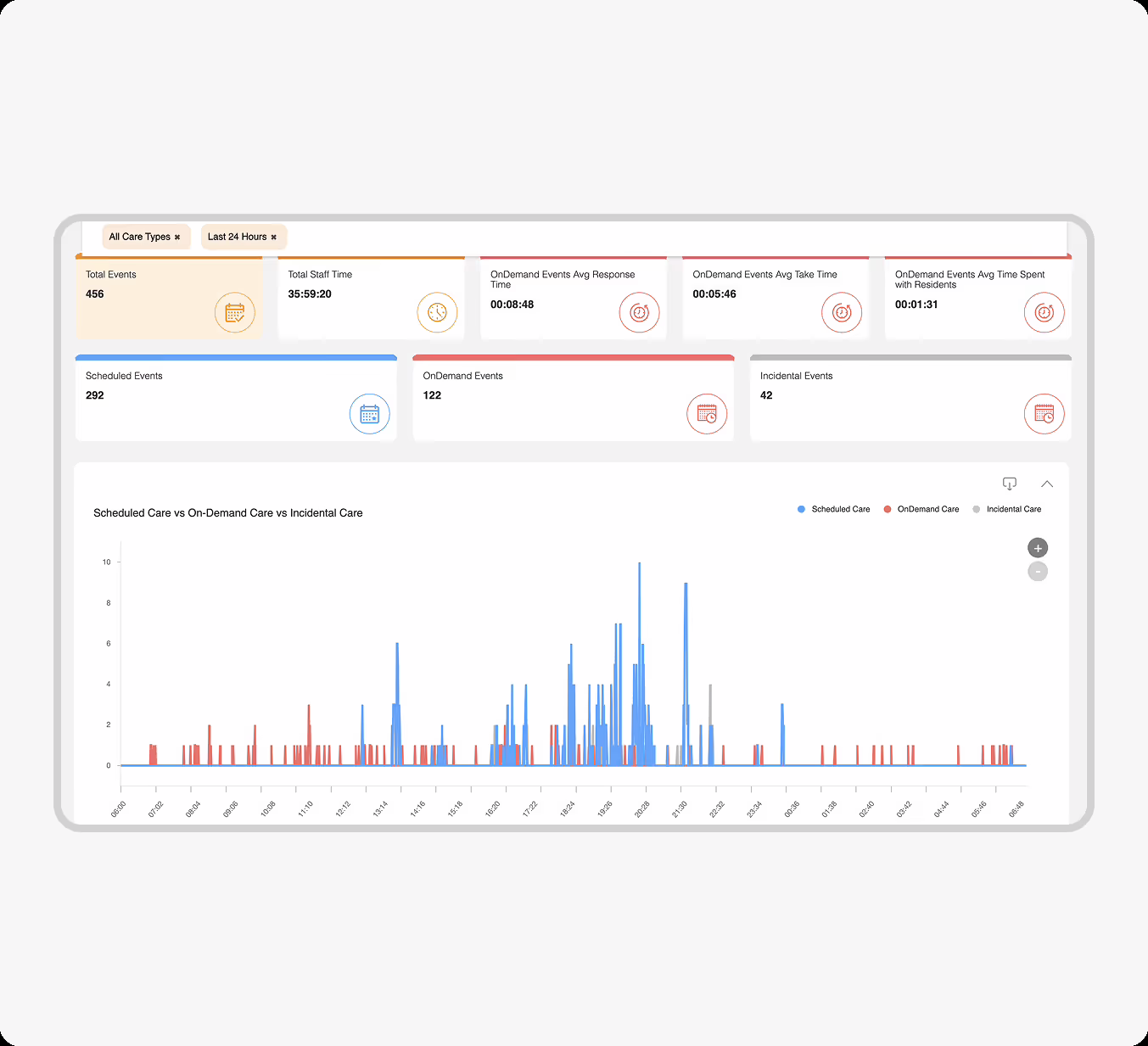 CarePredict’s Resident Care Platform brings together AI-powered insights, real-time care visibility, predictive health analytics, and streamlined workflows into one unified system. By moving from reactive to proactive care, communities can improve residents outcomes, boost operational efficiency, and unlock measurable financial results.