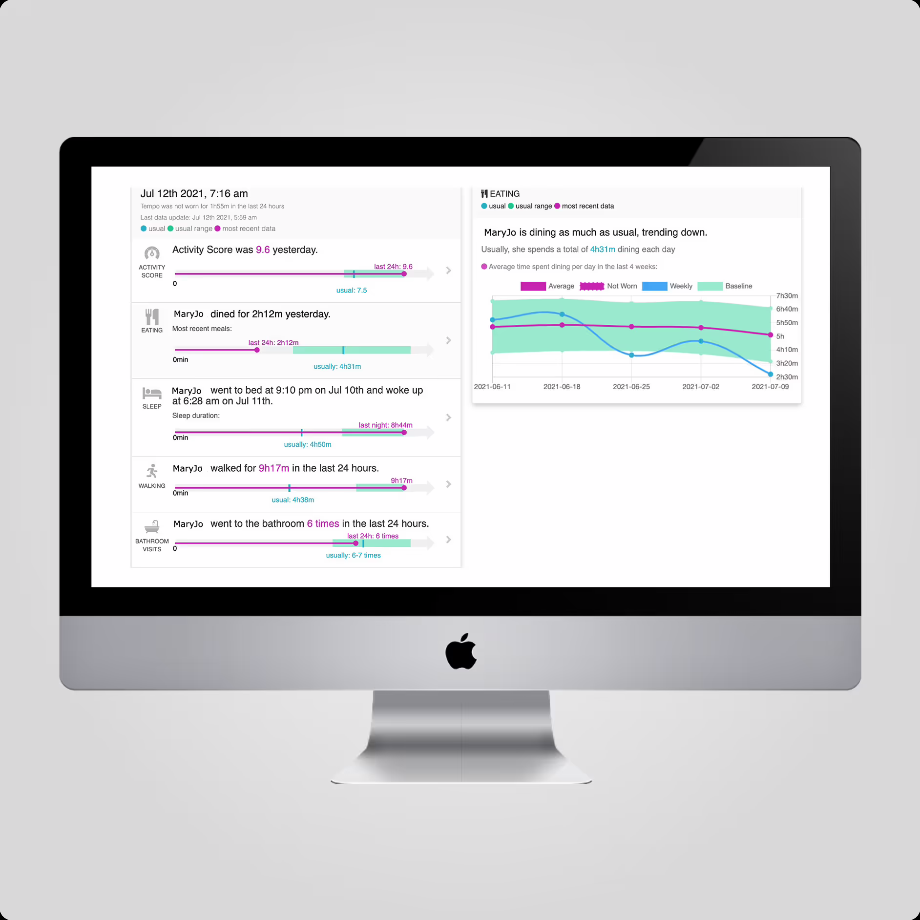 CarePredict integrates tools traditionally delivered as separate systems — including predictive health alerts, resident safety features, care documentation, and workforce productivity insights — into one seamless, easy-to-use platform. This allows staff to focus less on juggling technology and more on what matters most: quality care and resident satisfaction. CarePredict is powered by the Tempo wearable, a smart, comfortable device worn by residents that continuously monitors activity, sleep, nutrition, and other health signals — feeding real-time insights into the platform to support proactive care.